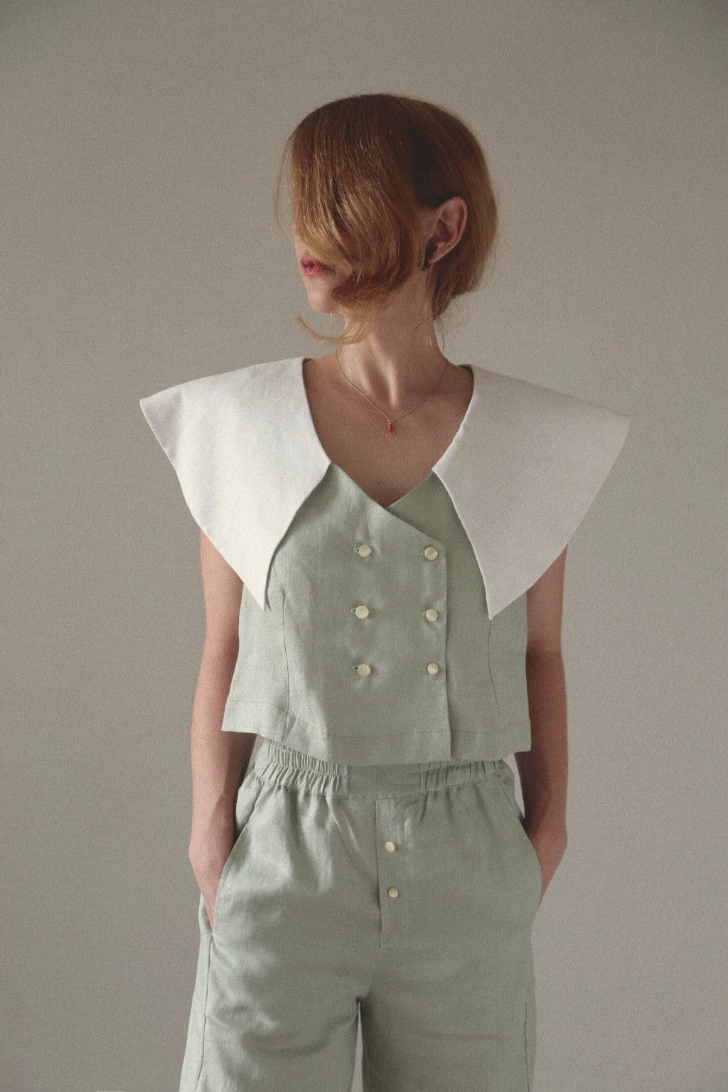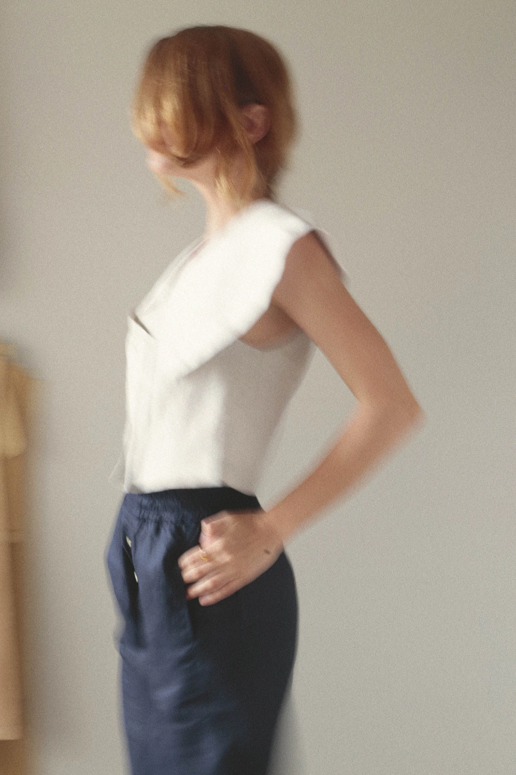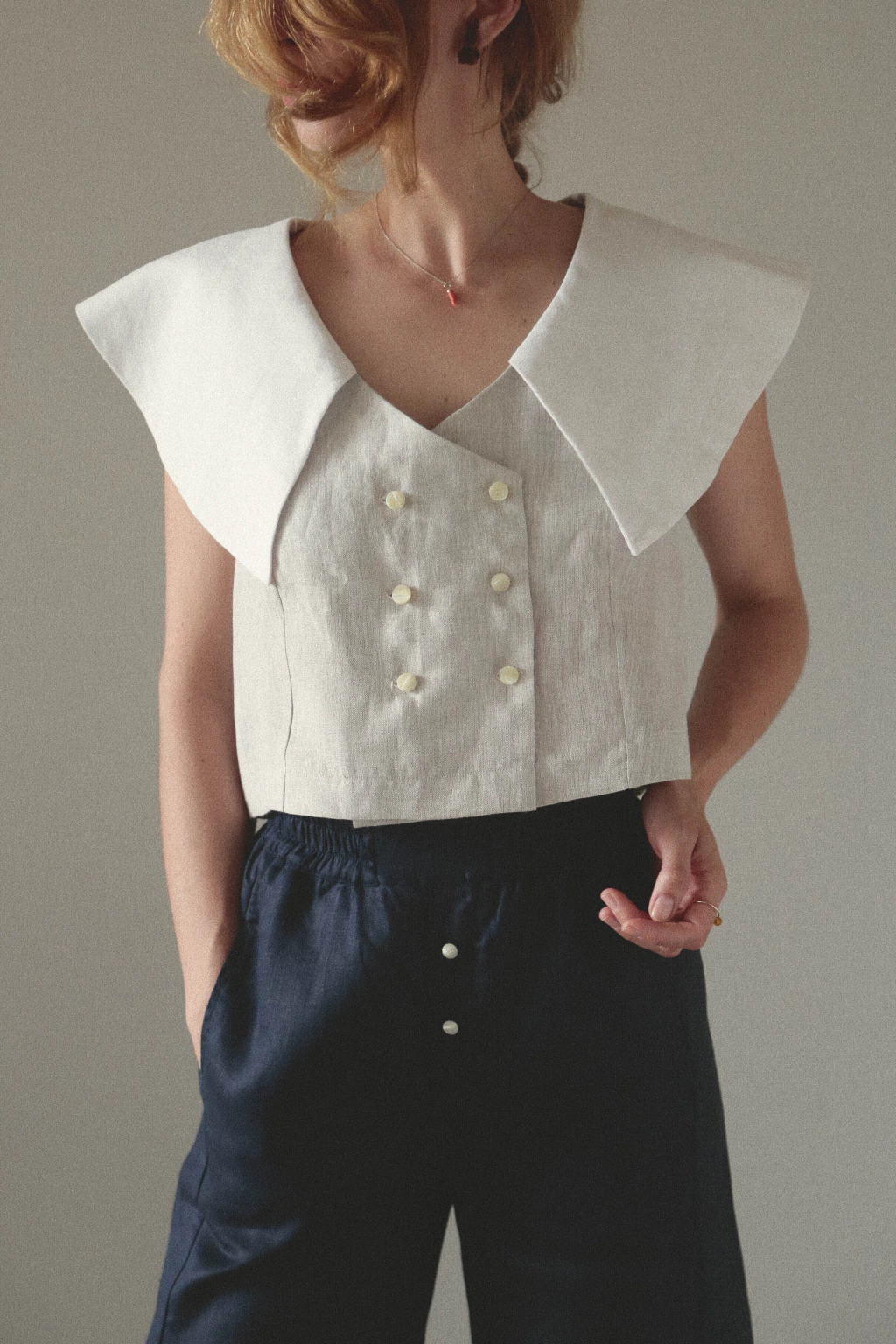 - Blusa de corte holgado con cruce delantero.