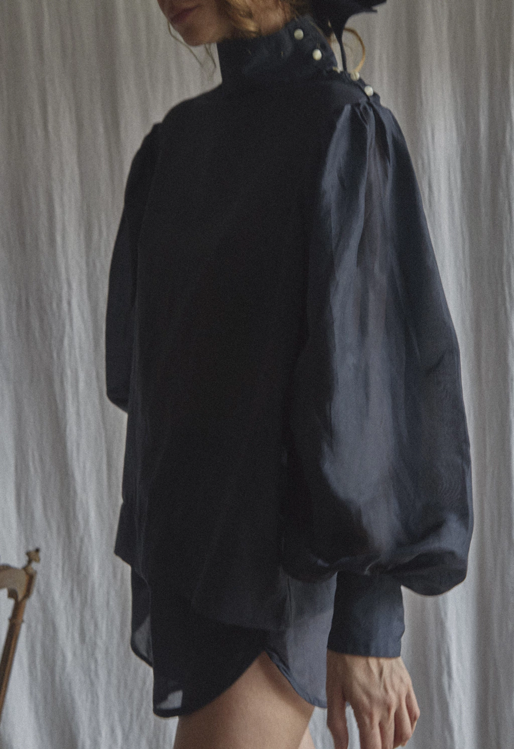 - Antiguos botones de Nácar en cuello y puños. Pegados a mano.
